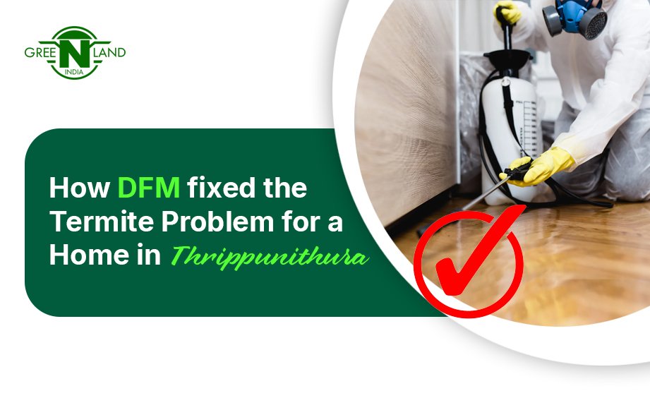 When Mr. Madhusudhanan K. S noticed small signs of termites in his house in Thrippunithura, Ernakulam he decided to handle it himself. Some local pesticides and home remedies took the stage. But within a short time, the issue worsened and began to spread across the house. The family realised the termites were already inside the structure, not just on the surface. That’s when he found DFM Greenland India on social media and reached out to the team for help.